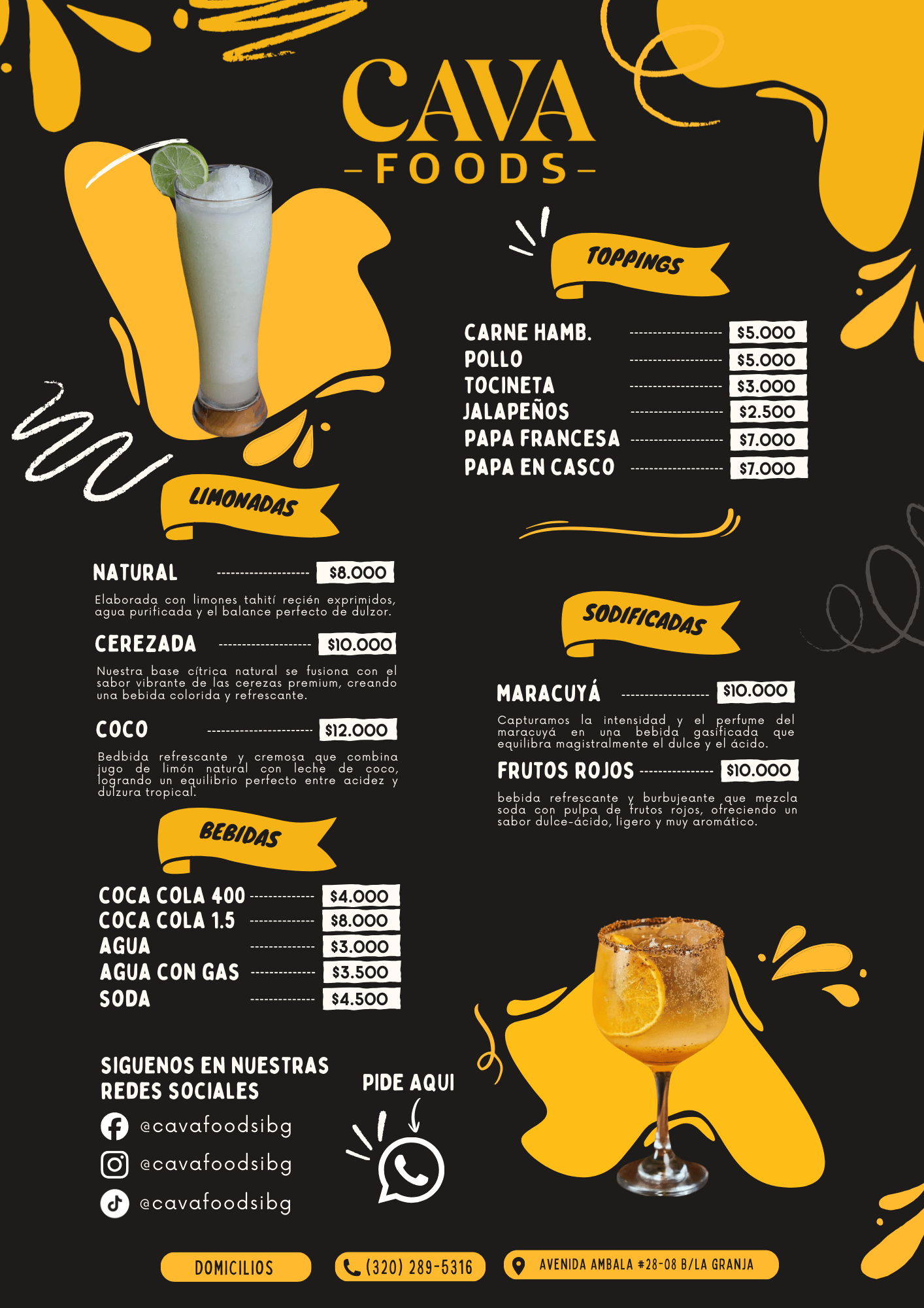Cava Foods: Sabor épico, porciones reales, nivel premium. 🍟🍷🥃
